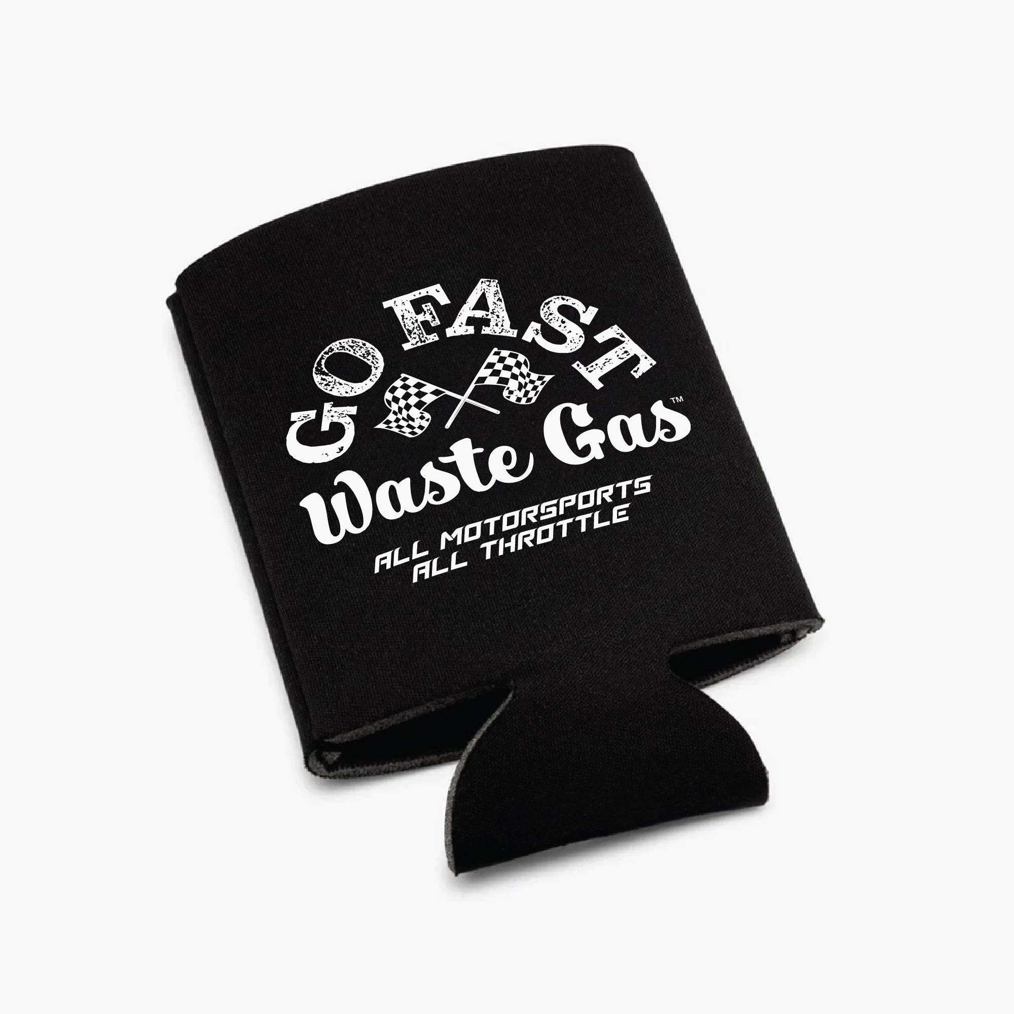 A black single-sided printed koozie featuring the GO FAST WASTE GAS™ OG logo. Keeps your drink cold and your style dialed.