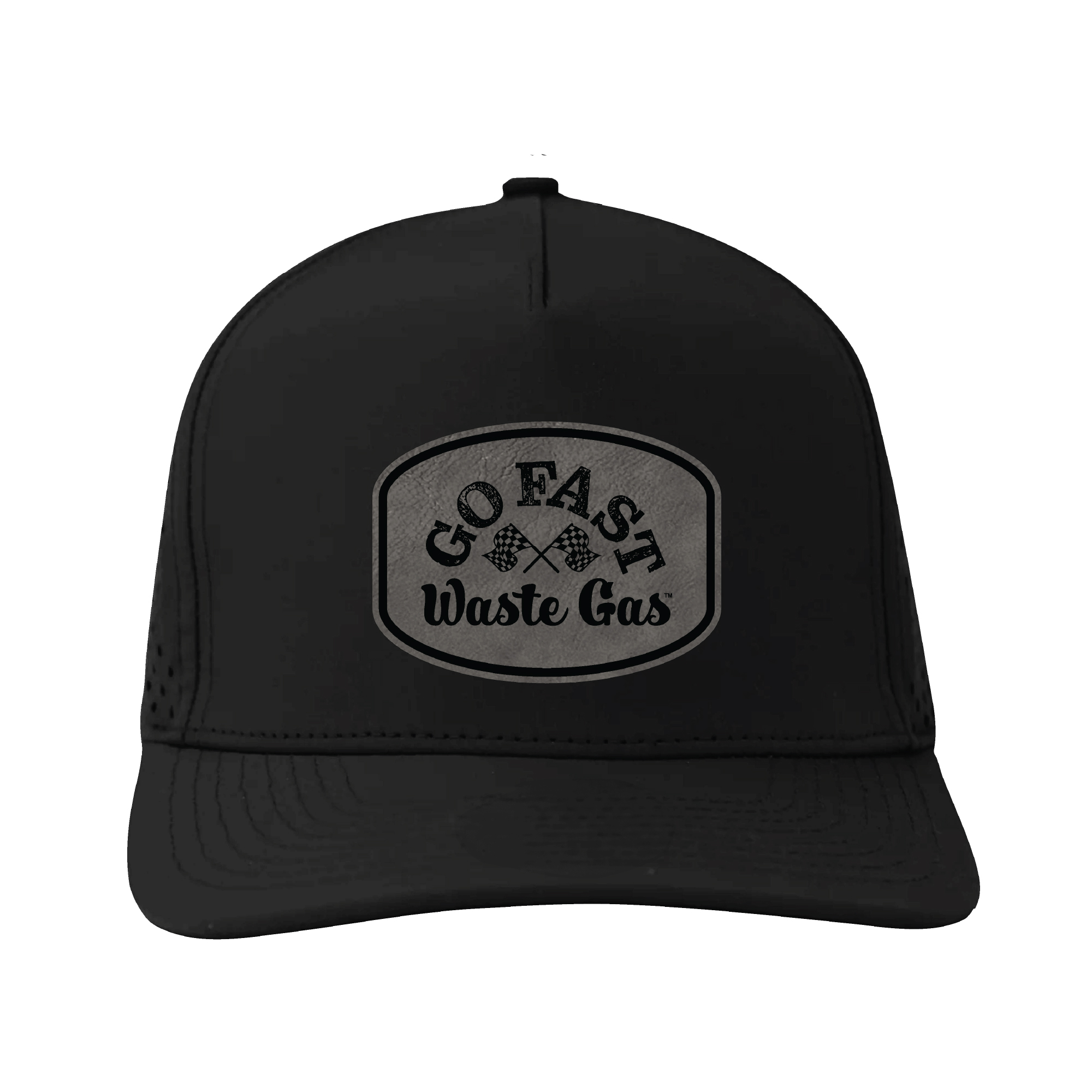 Every hat is finished with our etched grey leather GO FAST WASTE GAS™ patch — clean, premium, and built to look better with mileage.
