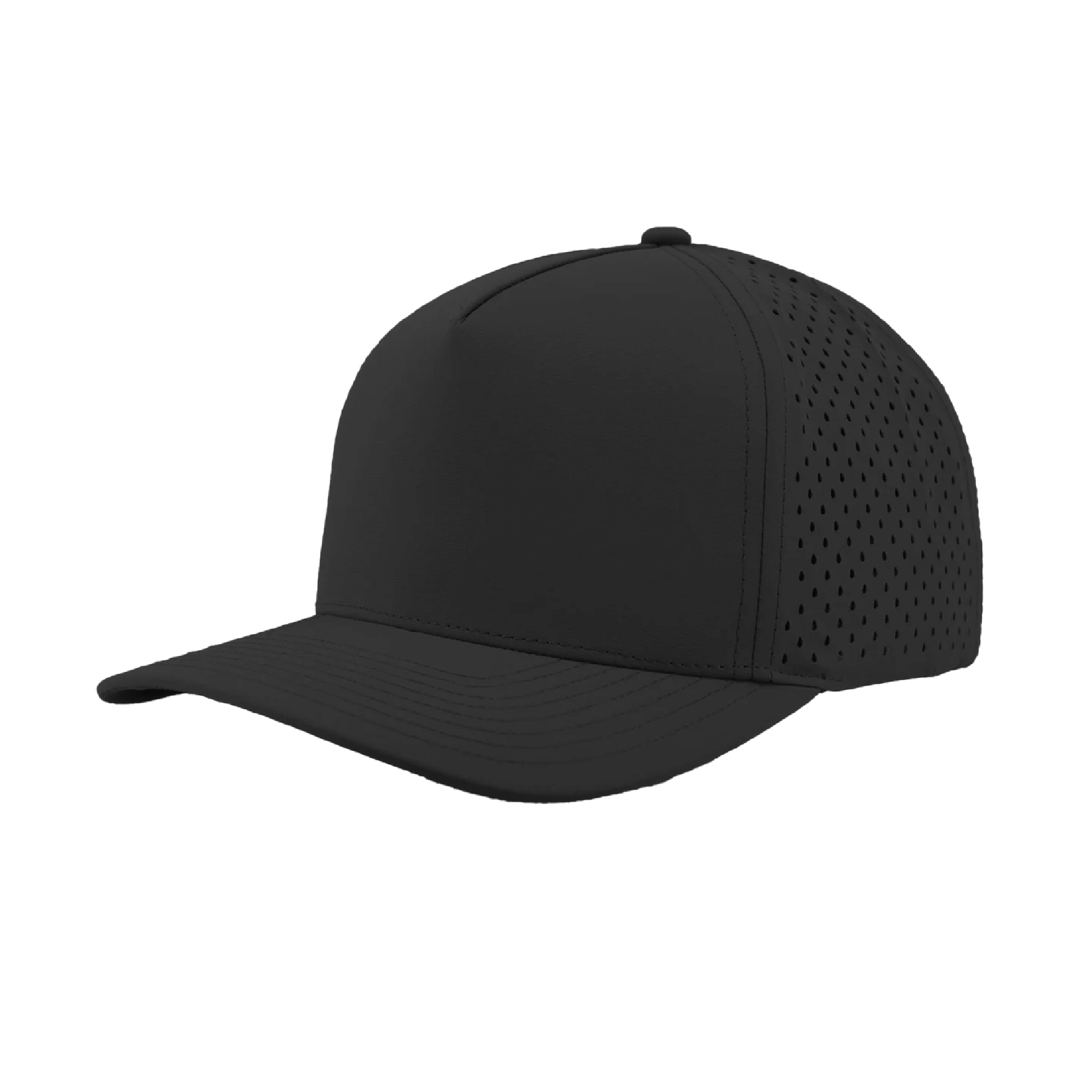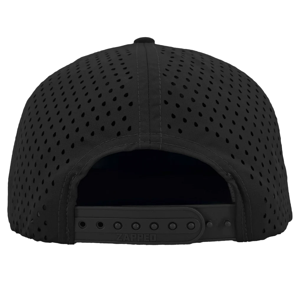 Meet the Blackhawk Performance Snapback — your go-to hat for motorsport weekends, desert heat, and everyday wear. This 5-panel, medium-profile snapback is crafted from a performance-grade black shell with laser-cut perforations that provide airflow without the look of a trucker.